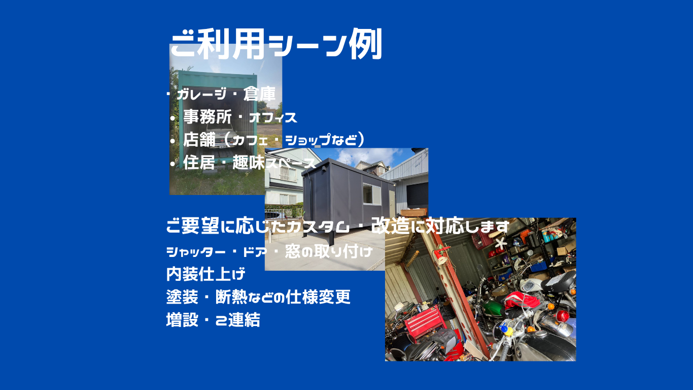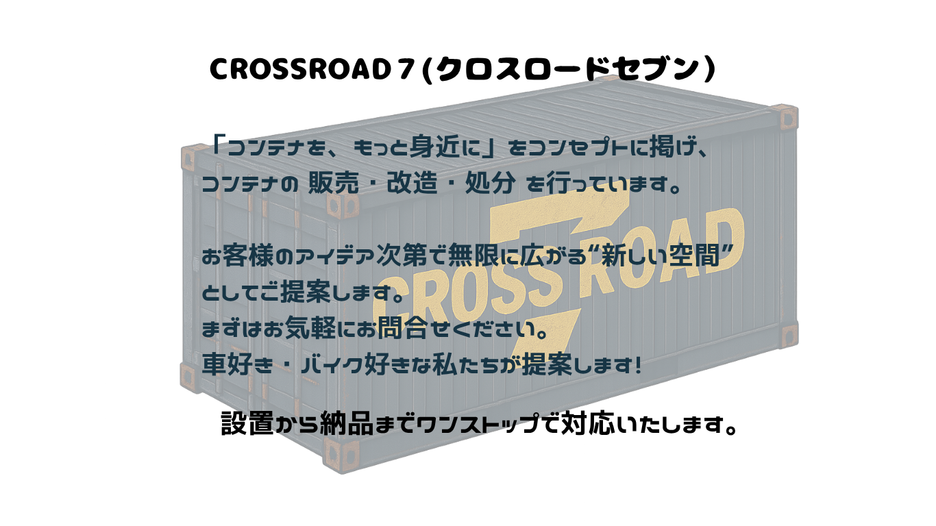 | 事業内容 | ・コンテナガレージ製作・販売・輸送 ・レンタルコンテナ ・船舶解体、処分 |
